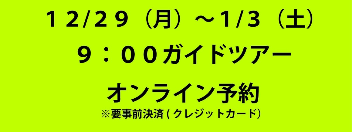 【年末年始 12/29(月)~1/3(土)】朝9:00ガイドツアーご予約受付中!